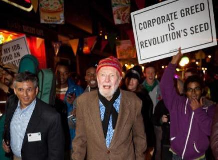 It's Oct 2011, I'm on a NYC street, I look up & here comes Pete Seeger leading an impromptu Occupy march down B'way! pic.twitter.com/T2OCdio55b