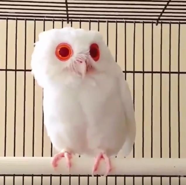 This red-eyed owl looks extremely strange, but is 100% real. It is an albino
