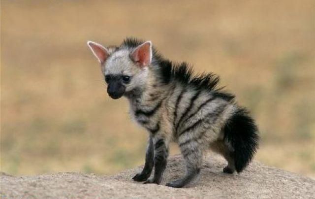 Dit is een baby Aardwolf. Een soort hyena zonder kiezen. Hij eet termieten en is liev.
