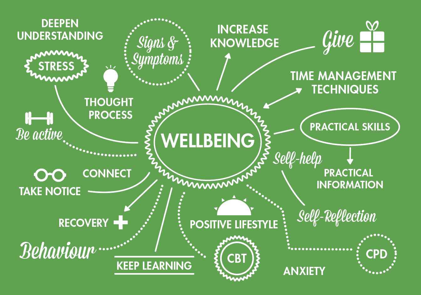 Diagram of what we need and what we need to overcome to support well-being